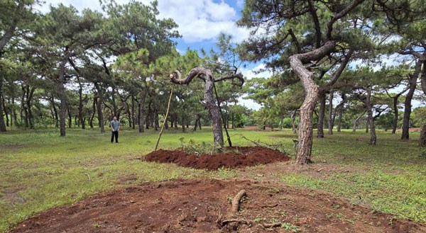 Nhiều cây thông cổ thụ, hình dáng đẹp ở trong rừng do người dân địa phương trồng đã bị bứng trộm. Ảnh: Kiến Lê